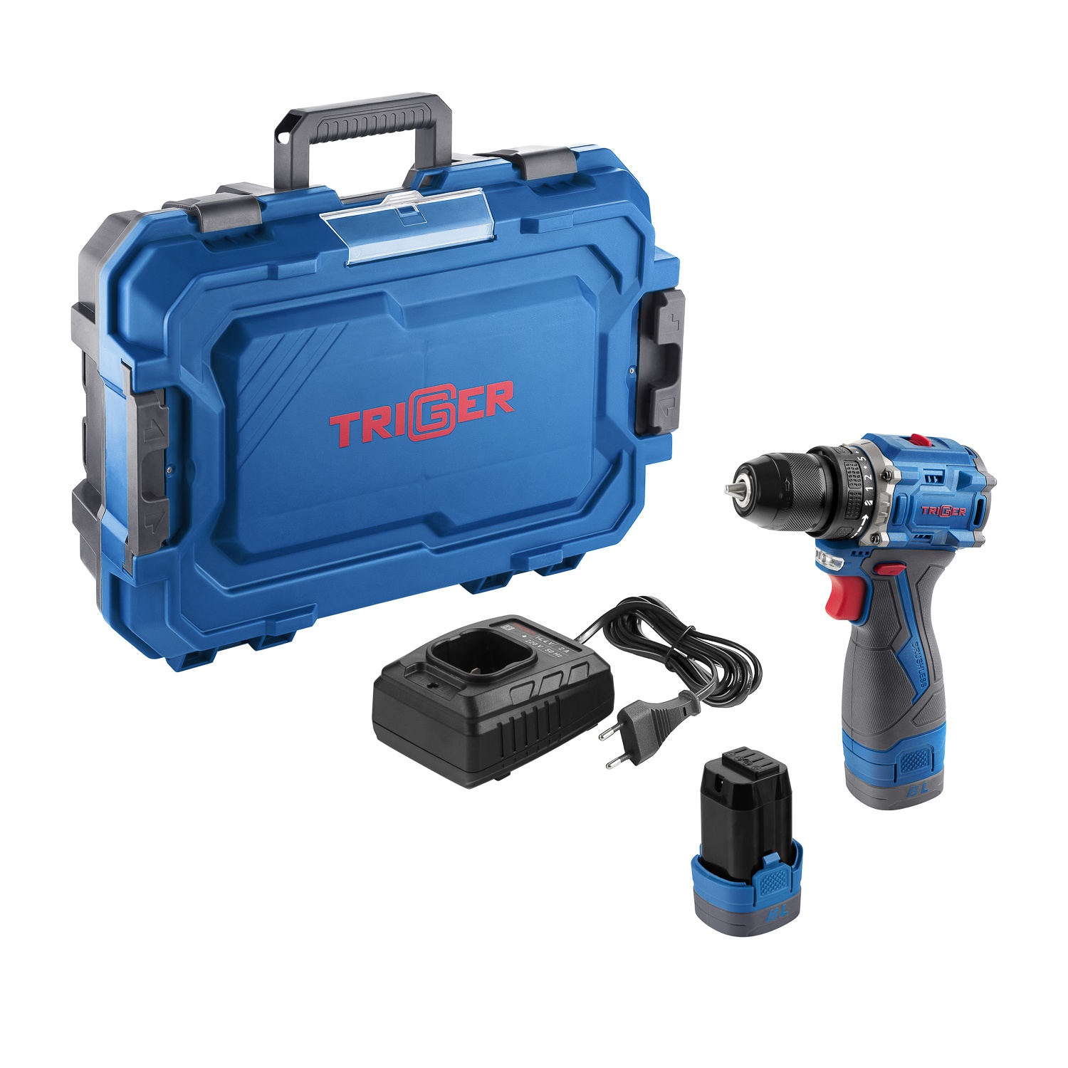 Дрель-шуруповерт Trigger 20130, бесщеточная, 14,4V, 10 мм, 48 Нм, 2 аккумулятора Li-ion (2Ач), кейс
