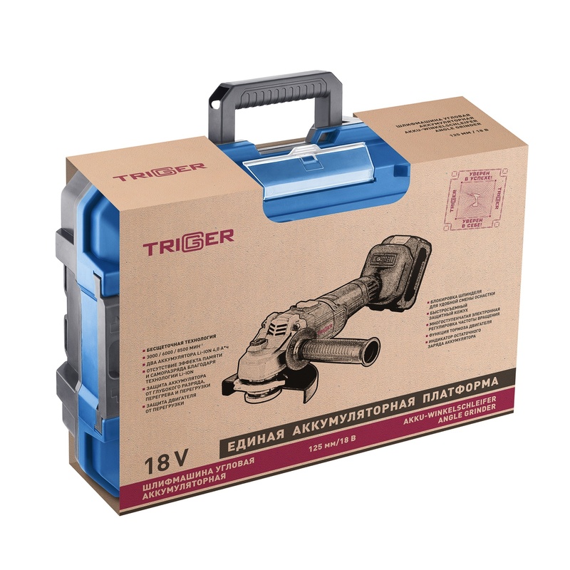Шлифмашина угловая УШМ аккумуляторная Trigger 20123 ЕАП 18В, Li-ion d=125мм, 2х4Ач, кейс, бесщеточная в Томске