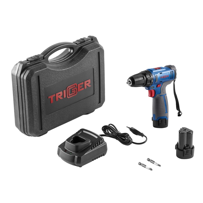 Дрель-шуруповерт Trigger 20101, 2 аккумулятора Li-ion (1,5Ач), 12V, 10 мм, 25 Нм, обойма, кейс